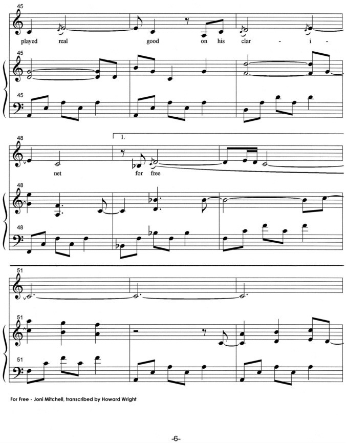 Piano music for "For Free", Joni Mitchell